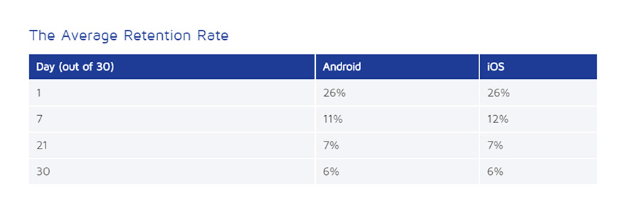 Figure 2. The average retention rate for Android and iOS apps