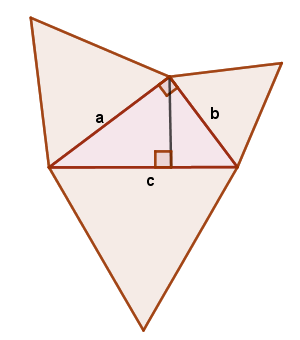 Three similar triangles. △1 with hypotenuse a, △2 with hypotenuse b, △3 with hypotenuse c, with scale factors such that